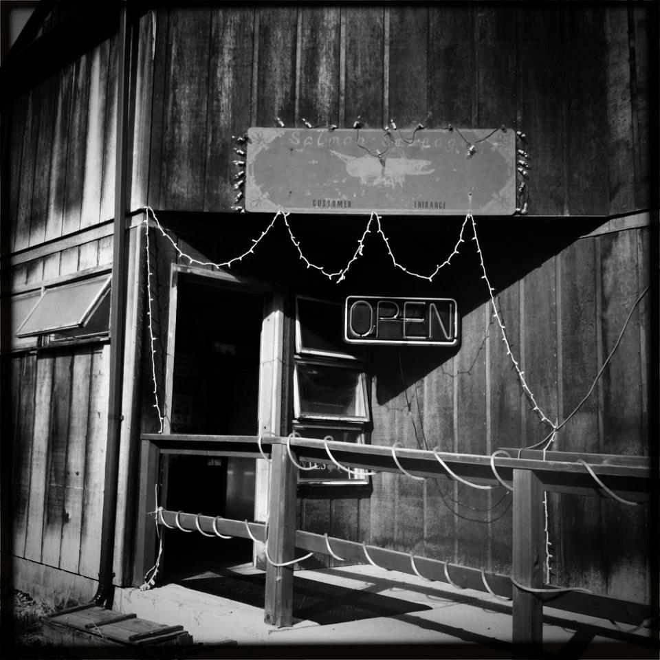 We pulled into a gravel parking lot next to a worn, wooden slatted, faded red structure which was a type of fish market/barn/convenience store. Vanessa was the brave one that went in with Chuck to purchase some Reindeer sausage. Inside, she said, all the workers knew him and they made small talk about the fisheries, sausage, and other Fairbanks things. When I saw her emerge from the store with a few long sausages (hold it….stop what you’re thinking…no cheap jokes on my blog), I was relieved that she wasn’t bludgeoned, but was, in fact, laughing like crazy. As I took a bite she murmured something about this being the first day of the trip, and what the hell was actually happening here??!?? The sausage was salty, but very good. Alaskans eat it cold (it’s cooked) wrapped in paper so it looks like a demented corn dog/banana/somethin/somethin/. My brother in law would call it a meat stick. It WAS a meat stick. No extra charge.